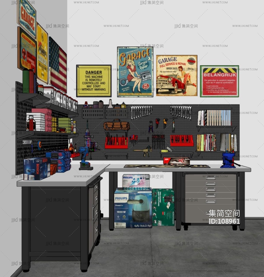 现代工业修理工作台 工具组合 su草图模型下载 [模型ID:108961]