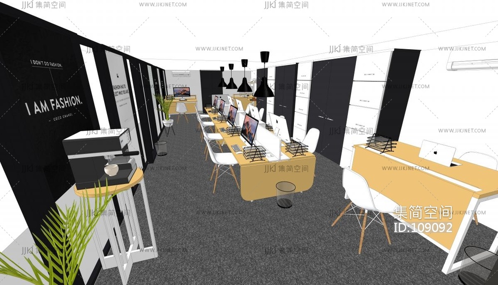 04现代公共办公区,开敞办公工位咖啡机 su草图模型下载 [模型ID:109092]