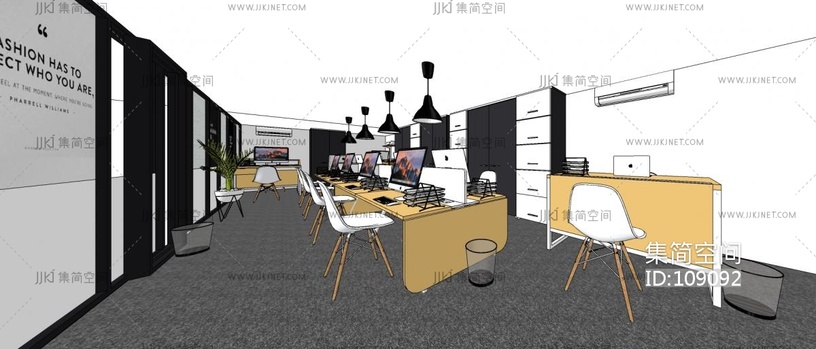 现代开敞办公su草图模型下载