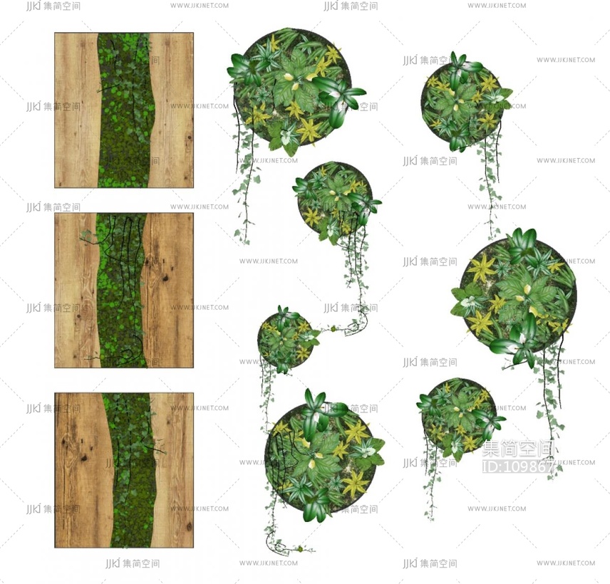 现代挂件_植物墙饰墙绘_多肉挂件_植物挂件_植物墙_苔藓墙SU模型su草图模型下载