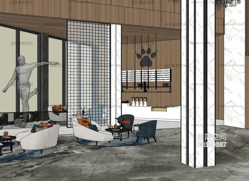 现代大堂,接待台 su草图模型下载 [模型ID:109887]