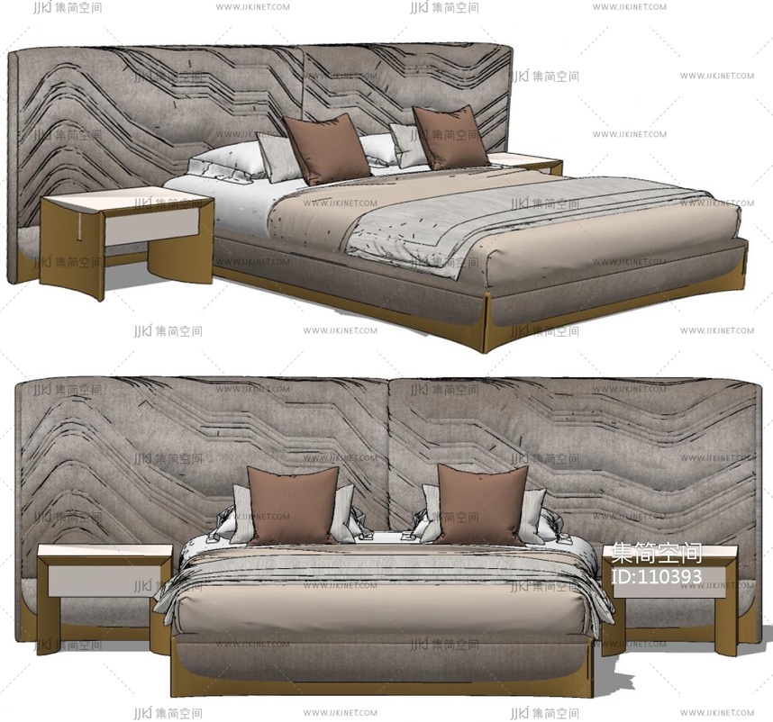 visionnaire 现代布艺双人床 su草图模型下载 [模型ID:110393]