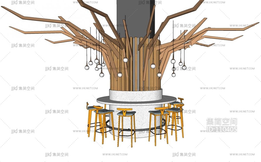 13,树干树枝造型柱子,吧椅,吧凳 su草图模型下载 [模型ID:110405]