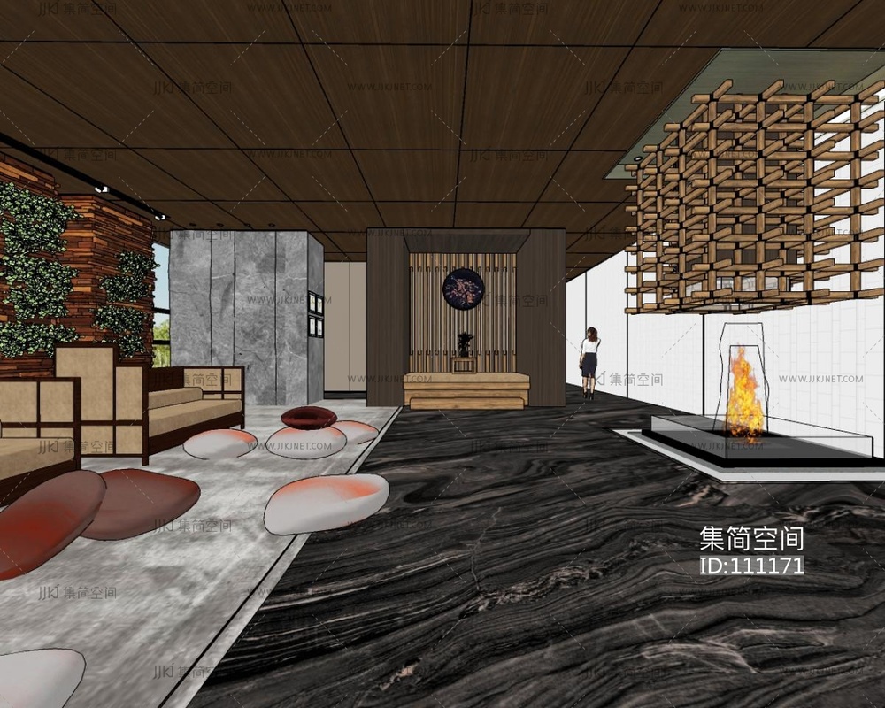 新中式酒店休闲区, su草图模型下载 [模型ID:111171]