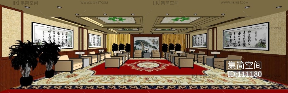 新中式接待室, su草图模型下载 [模型ID:111180]