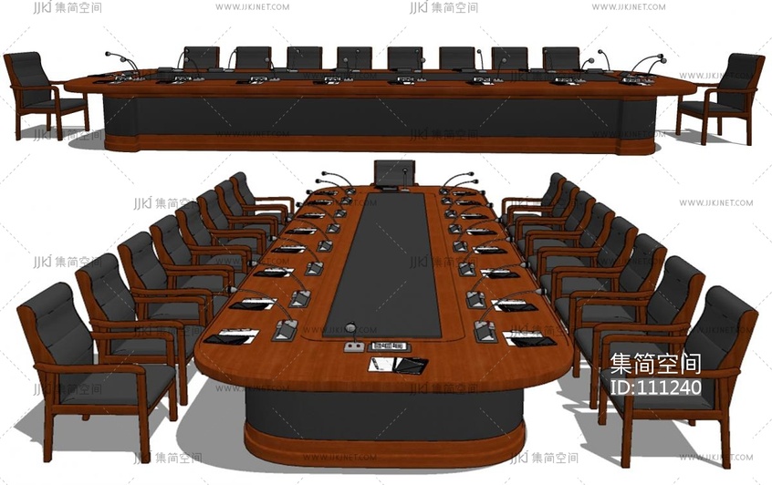 现代实木党政机关政府机构会议桌椅 su草图模型下载 [模型ID:111240]