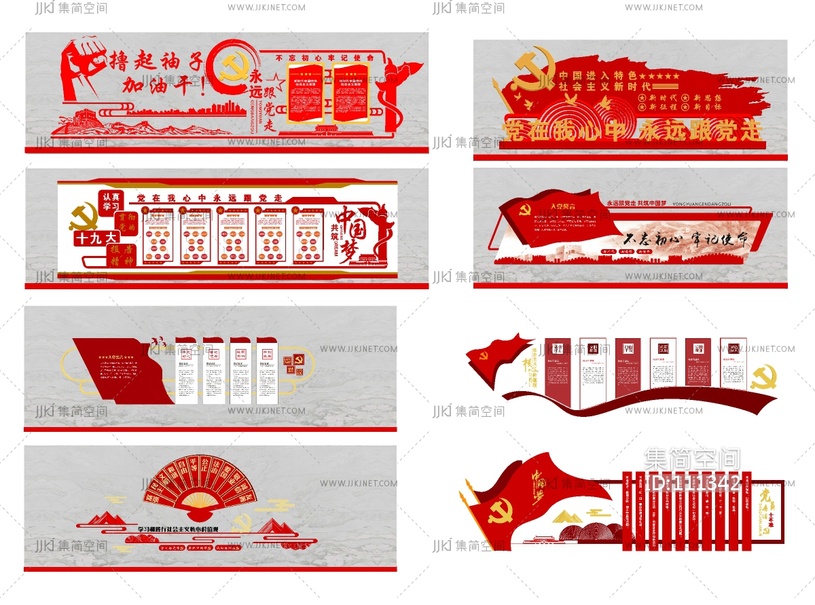 现代党建,党组文化墙,展厅展示区展示墙 su草图模型下载 [模型ID:111342]