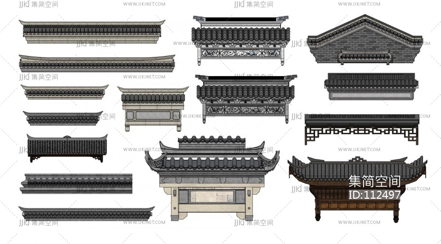 中式古建建筑屋檐 su草图模型下载 [模型ID:112497]