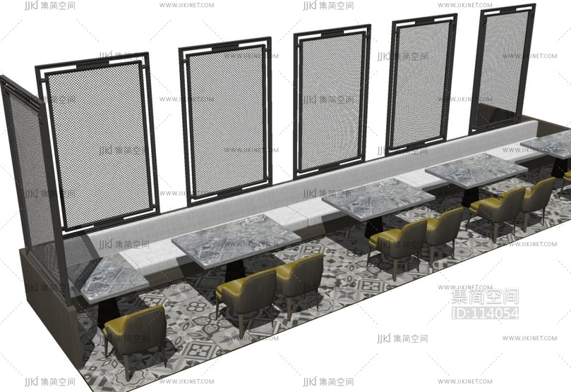 餐厅卡座卡位餐桌椅 su草图模型下载 [模型ID:114054]