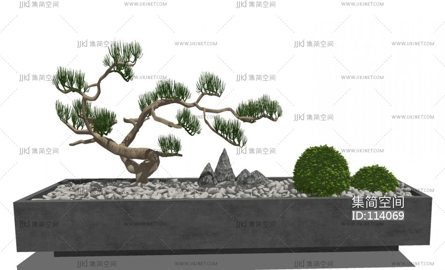 101新中式松树景观小品盆景迎客松 su草图模型下载 [模型ID:114069]