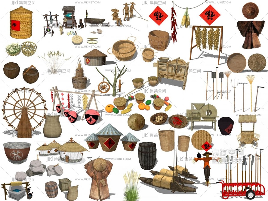 中式乡村田园农具 su草图模型下载 [模型ID:114582]