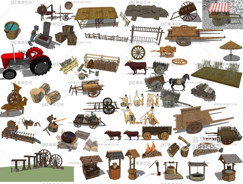 中式乡村田园农具 农家乐民宿小品 su草图模型下载 [模型ID:114594]