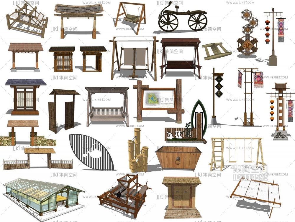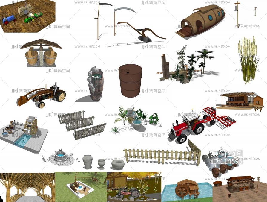 中式乡村田园农具 农家乐民宿小品 su草图模型下载 [模型ID:114595]