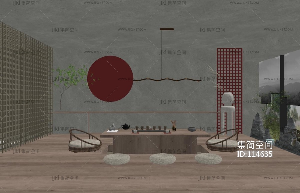 侘寂风茶室, su草图模型下载 [模型ID:114635]
