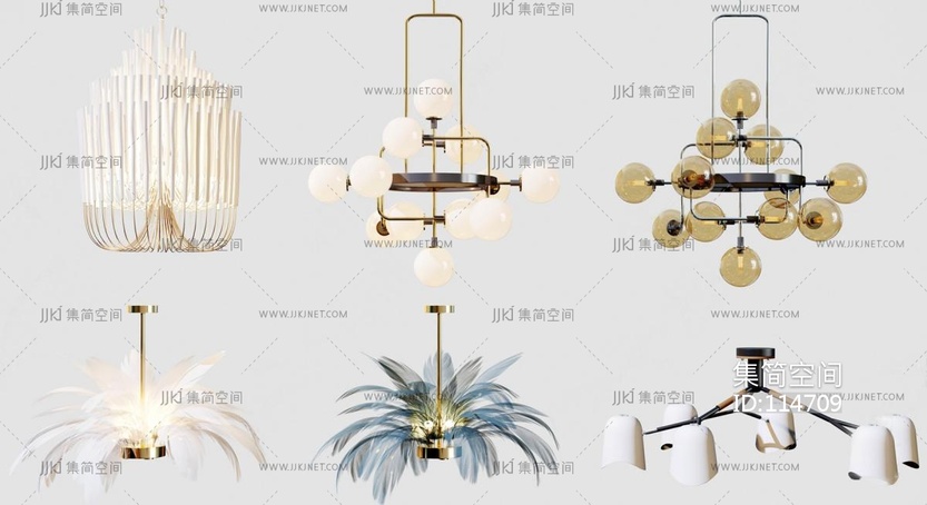 现代轻奢羽毛吊灯 su草图模型下载 [模型ID:114709]