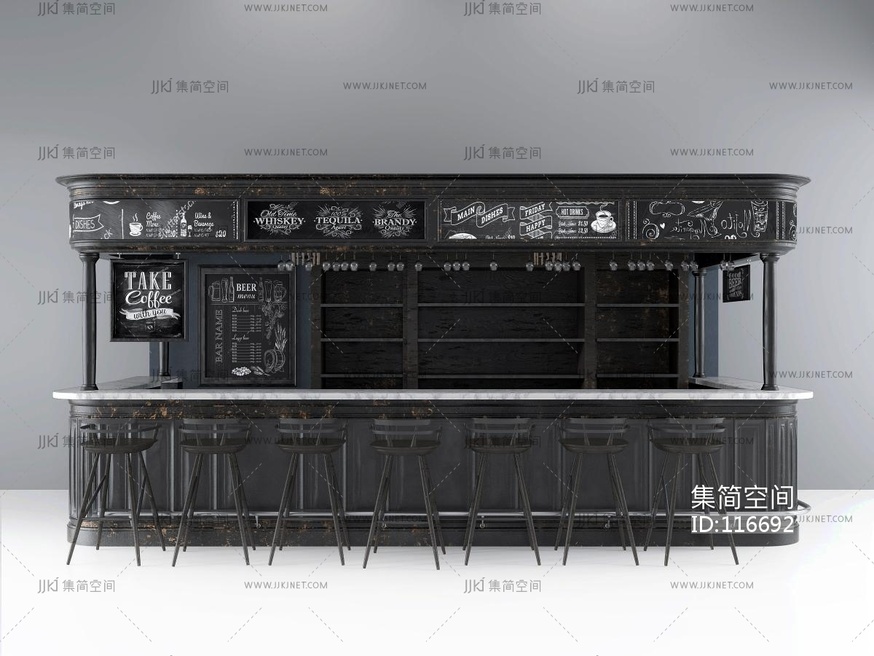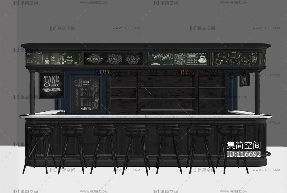 工业风酒吧吧台吧椅组合SU模型su草图模型下载