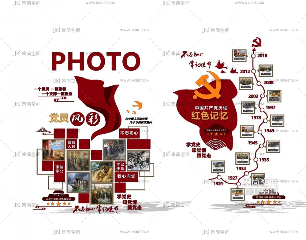 现代党建文化墙,宣传墙 su草图模型下载 [模型ID:116911]