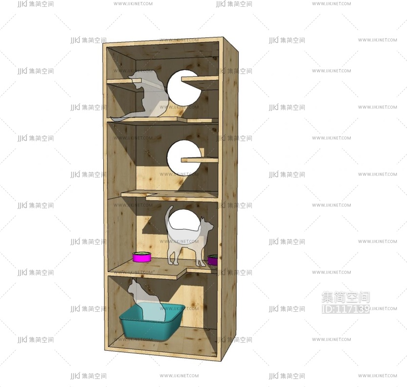 现代宠物猫舍 猫爬架 su草图模型下载 [模型ID:117139]