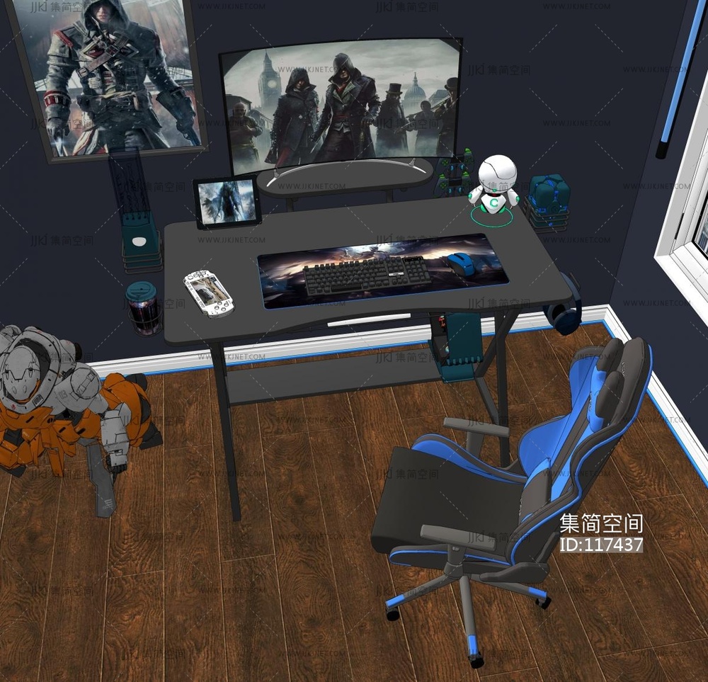 现代电竞电脑桌椅组合 su草图模型下载 [模型ID:117437]
