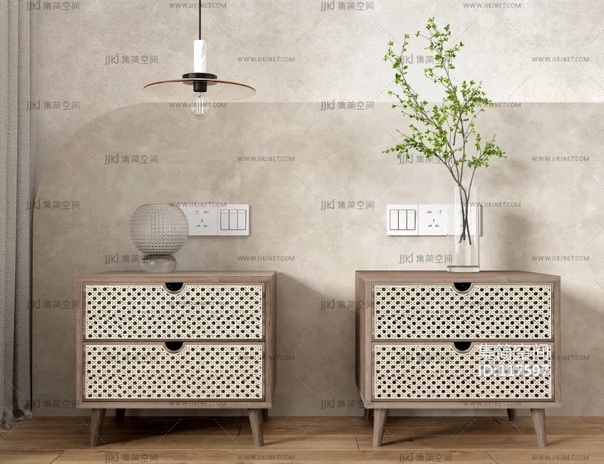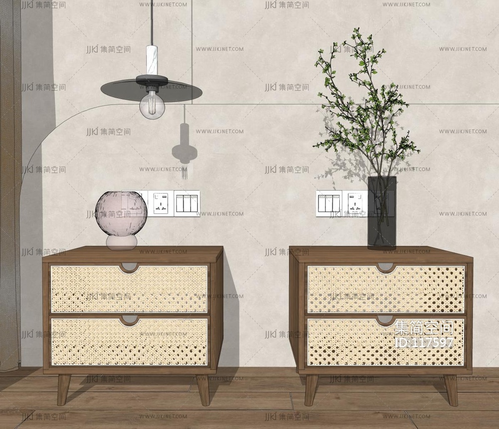 侘寂床头柜 su草图模型下载 [模型ID:117597]