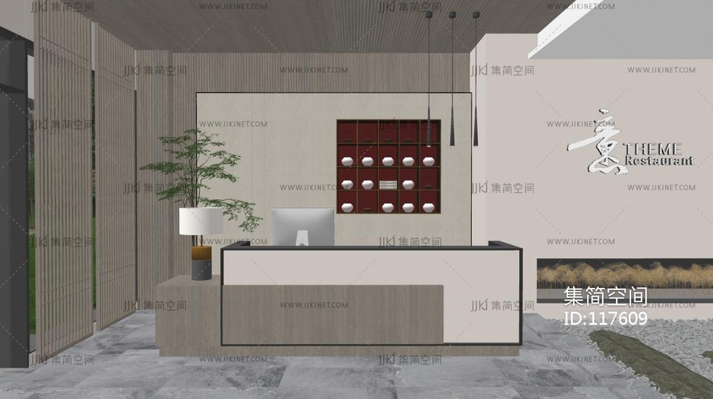 新中式酒店会所前台 su草图模型下载 [模型ID:117609]