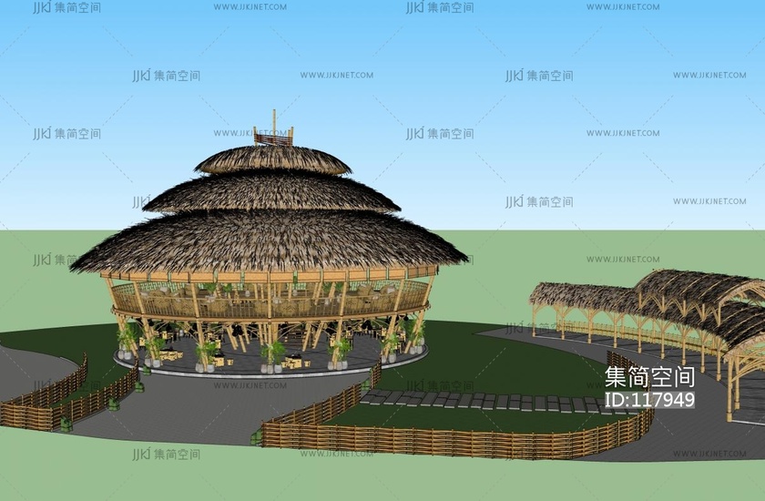 东南亚风格茅草竹楼_,凉亭 su草图模型下载 [模型ID:117949]