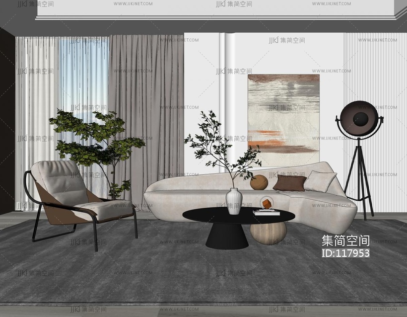 现代布艺异形沙发组合 su草图模型下载 [模型ID:117953]