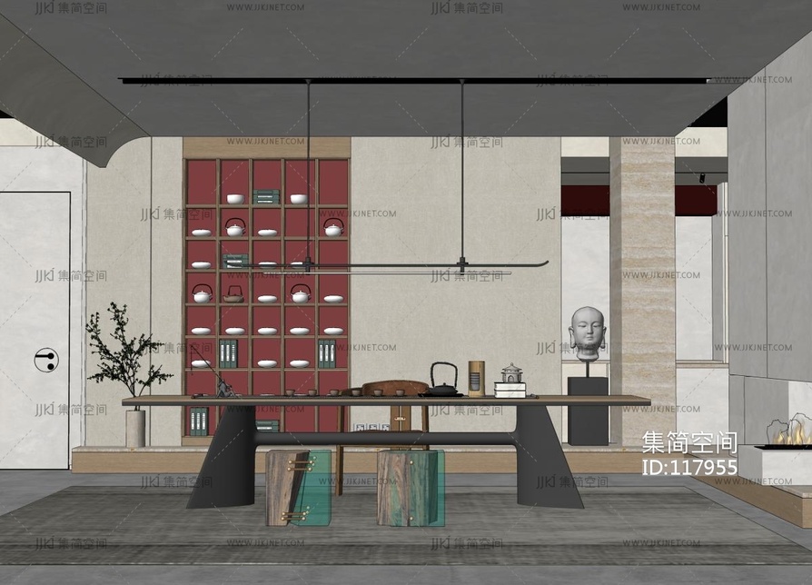 现代侘寂风茶室 su草图模型下载 [模型ID:117955]