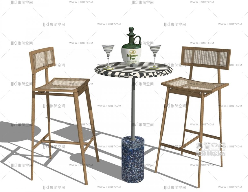现代风格吧台吧椅组合 su草图模型下载 [模型ID:117957]