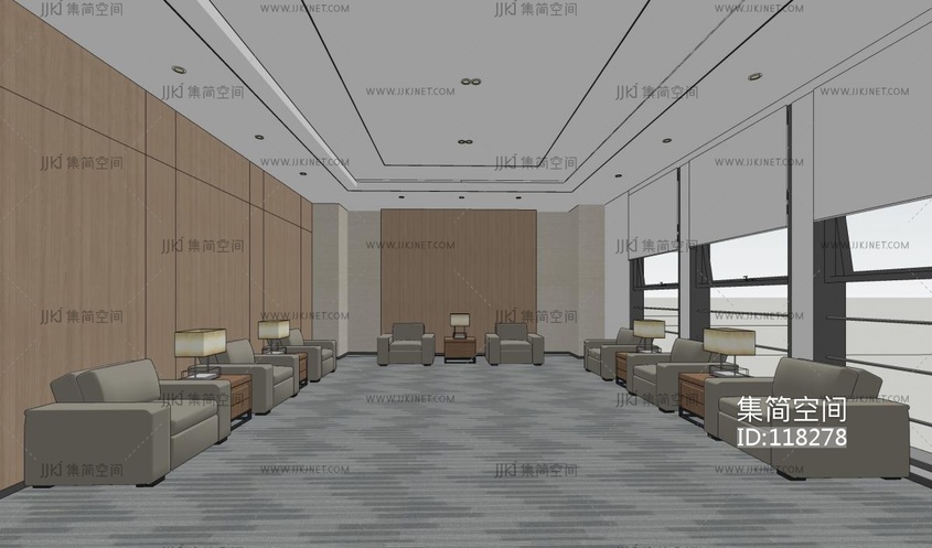 现代休息区,接待室su草图模型下载
