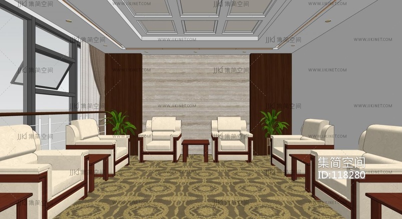 26中式贵宾接待室、接待室沙发su草图模型下载