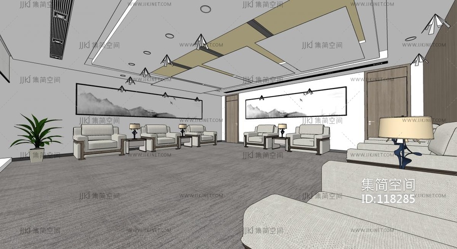 25新中式贵宾接待室,沙发 su草图模型下载 [模型ID:118285]