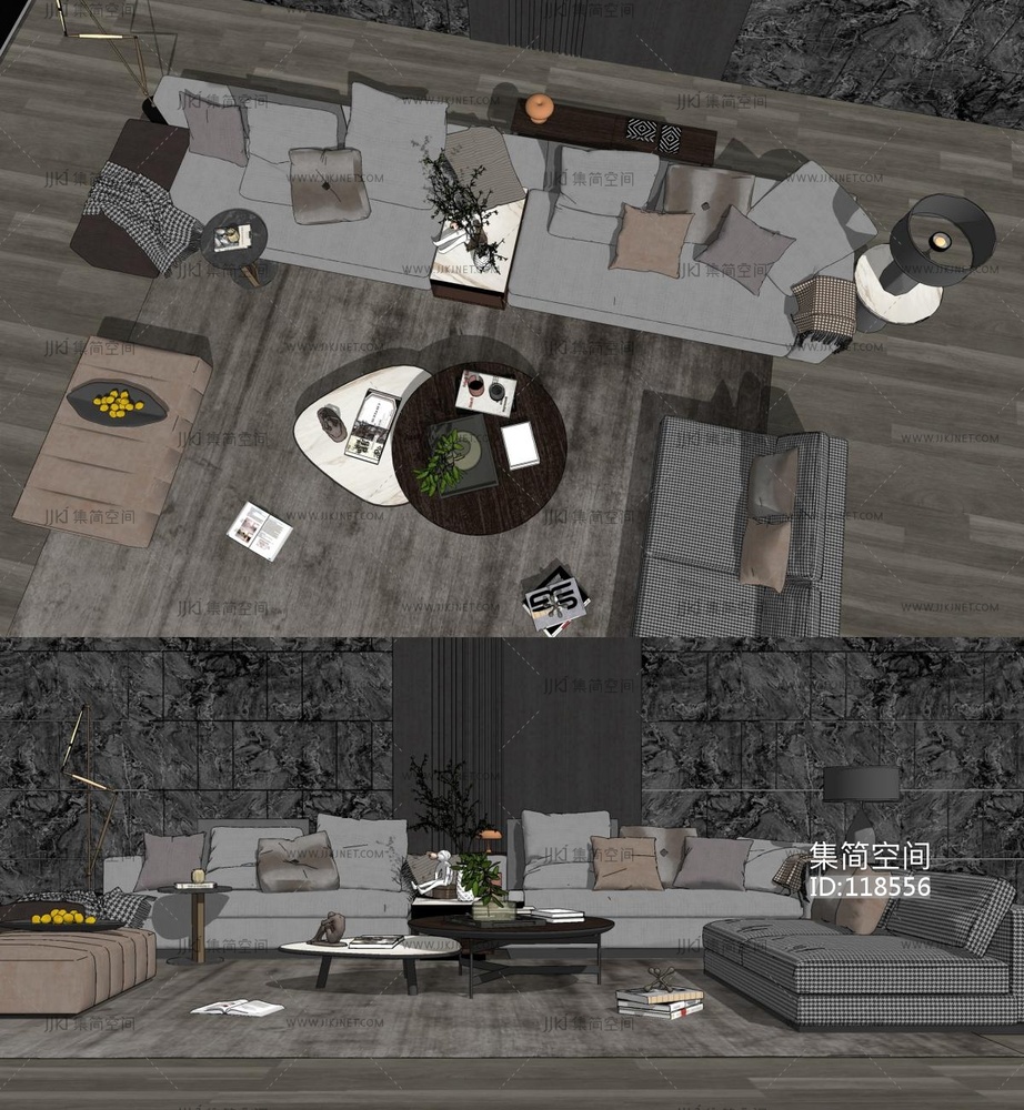 minotti 现代沙发茶几组合 su草图模型下载 [模型ID:118556]