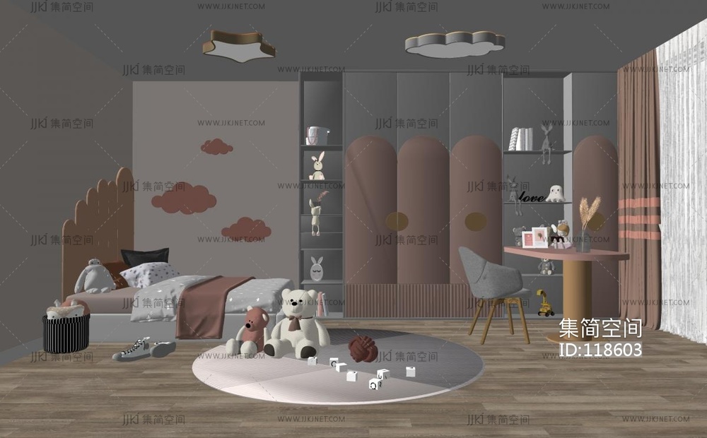 现代女孩房 儿童房 su草图模型下载 [模型ID:118603]