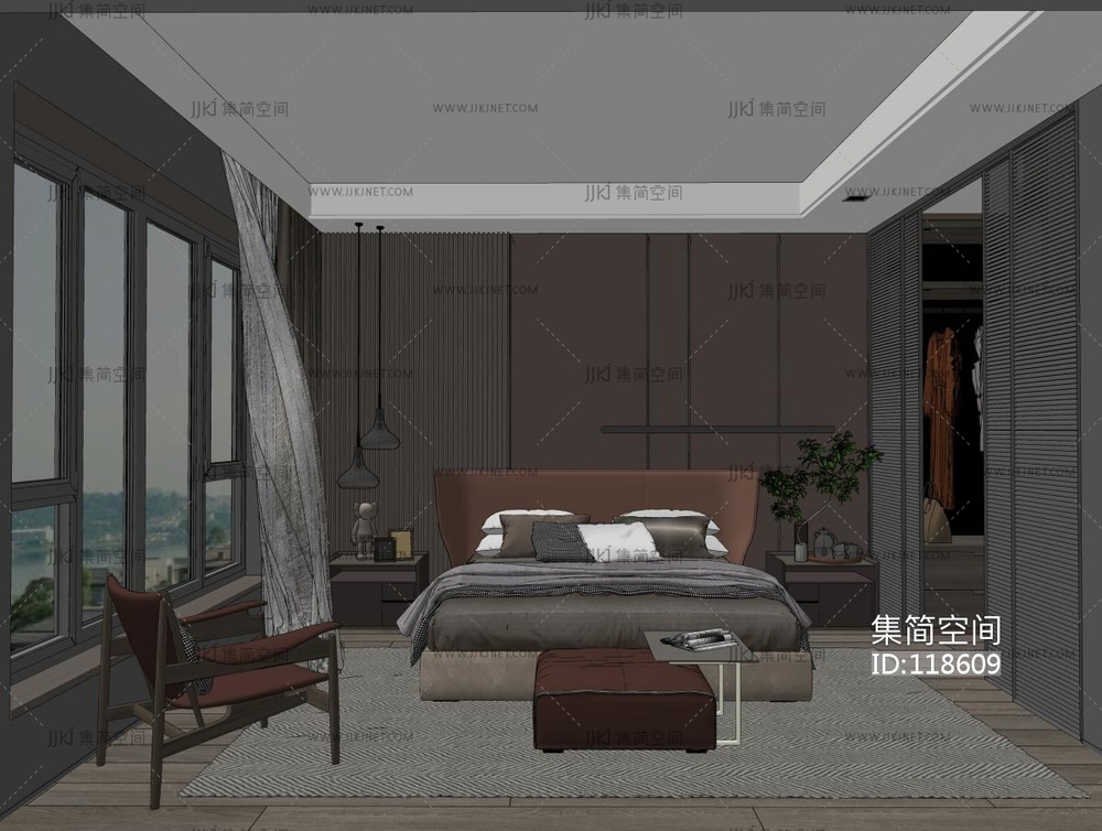 现代高级灰卧室 su草图模型下载 [模型ID:118609]