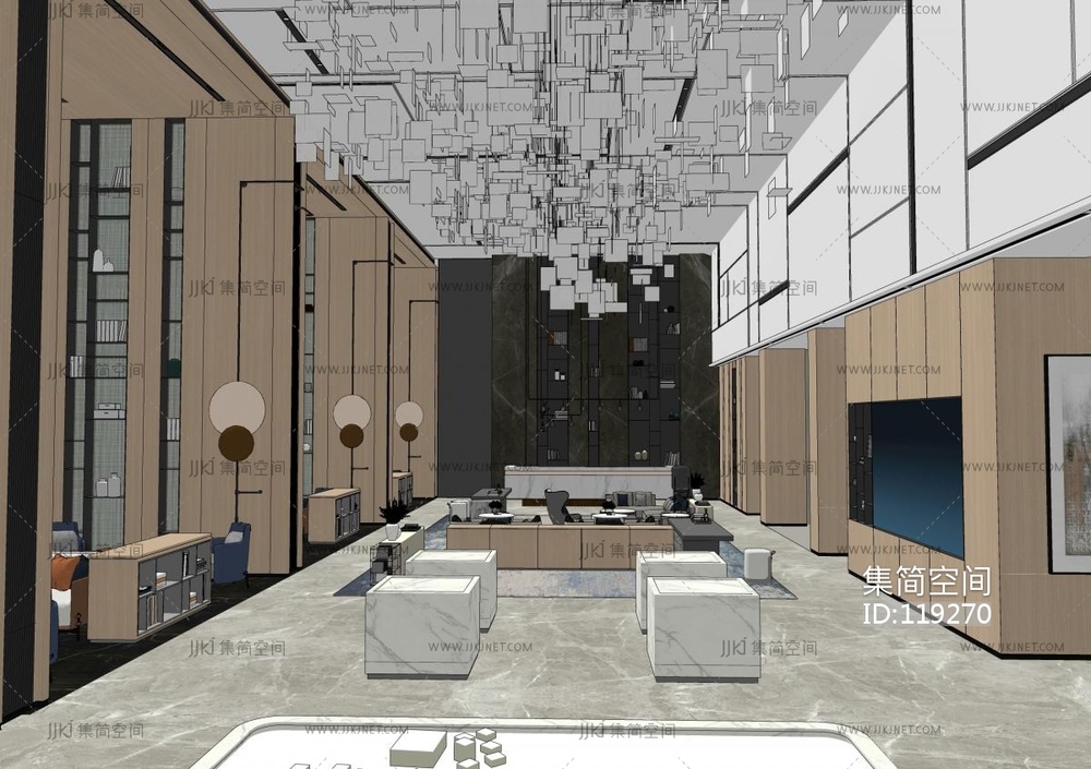 现代售楼处 接待处 su草图模型下载 [模型ID:119270]