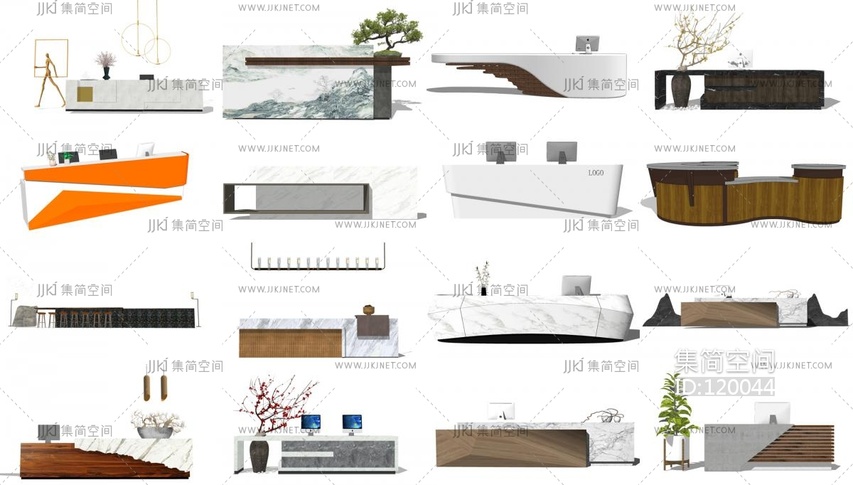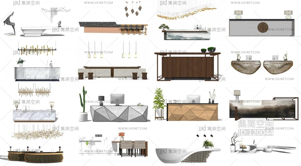 现代中古前台_毛石服务台SU模型su草图模型下载
