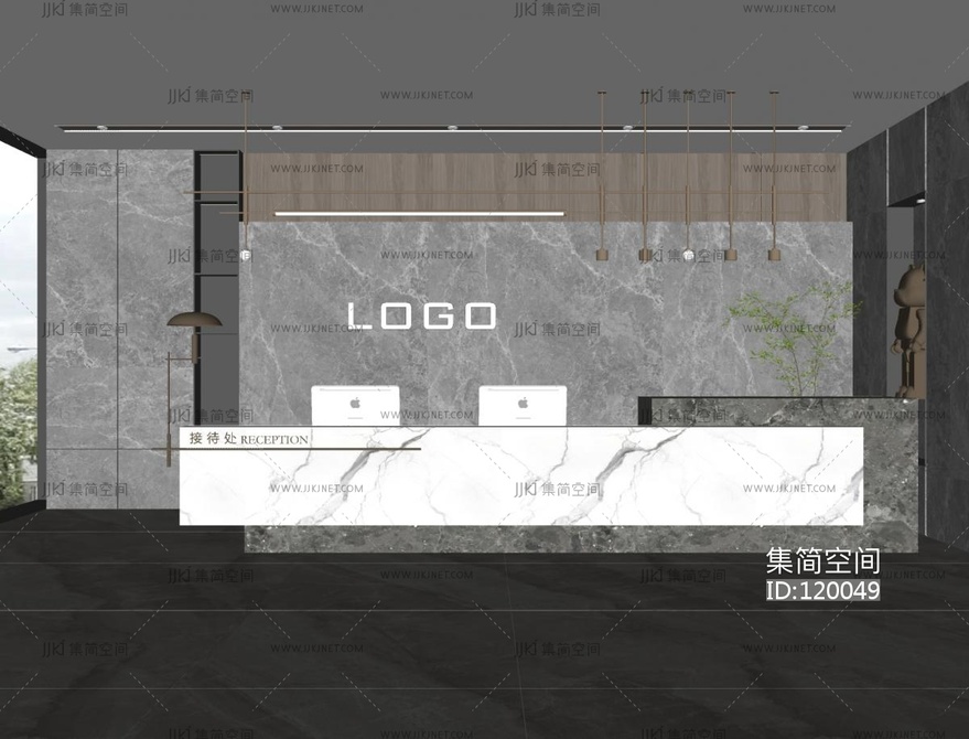 现代中古前台_毛石服务台SU模型su草图模型下载