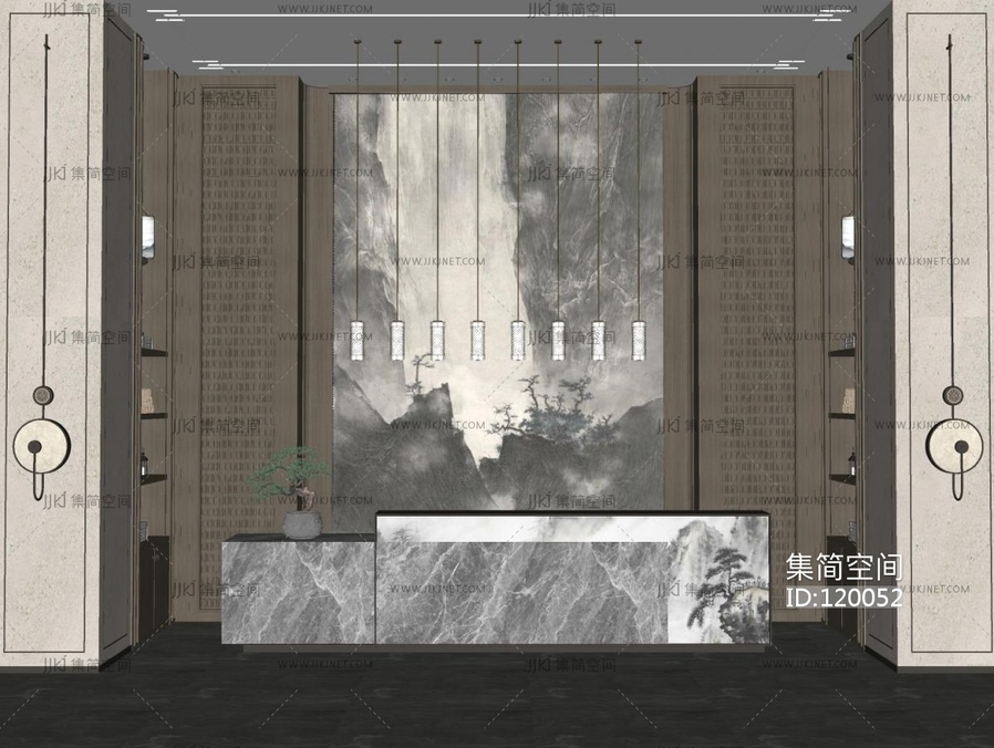新中式前台,接待台 su草图模型下载 [模型ID:120052]