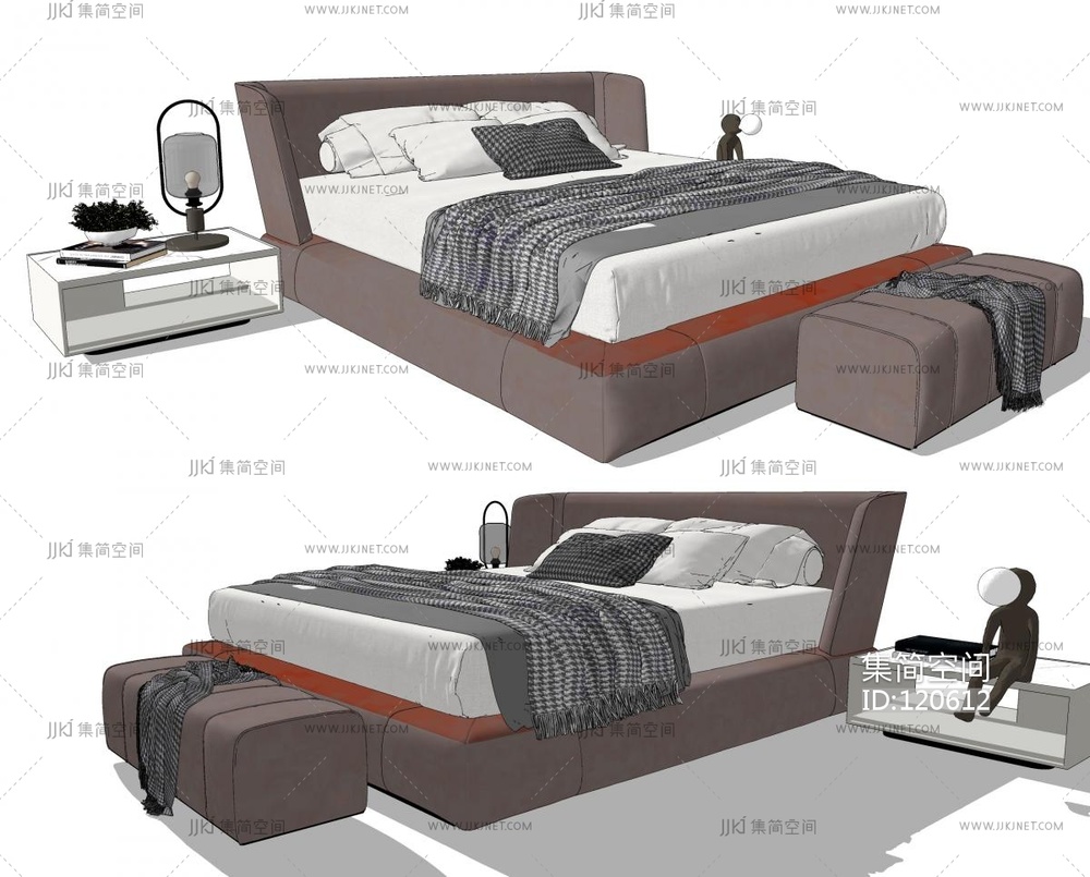 意大利 minotti 现代双人床 su草图模型下载 [模型ID:120612]
