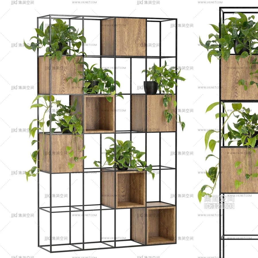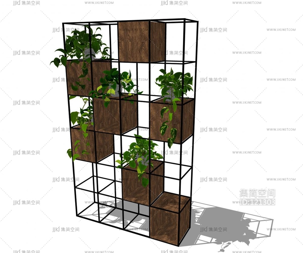 现代绿植盆栽装饰,铁艺花架隔断 su草图模型下载 [模型ID:121303]