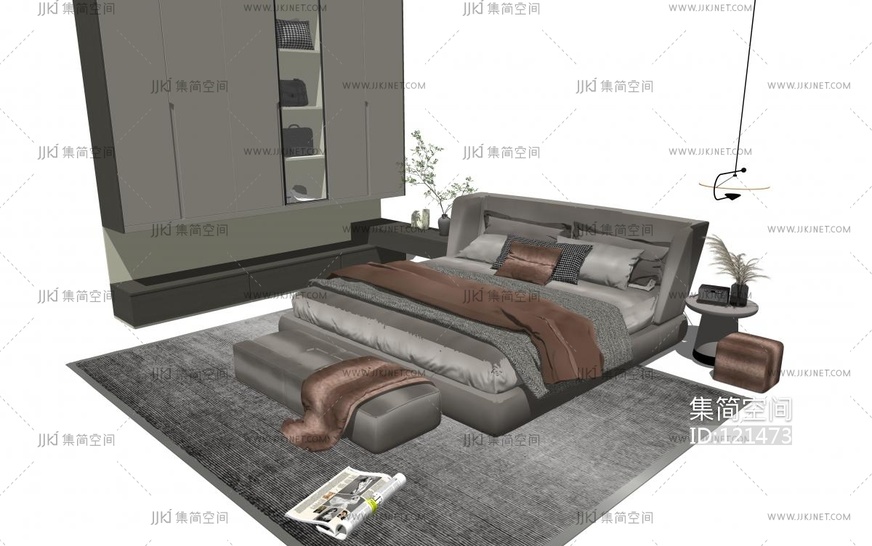 现代简欧式皮革双人床 su草图模型下载 [模型ID:121473]