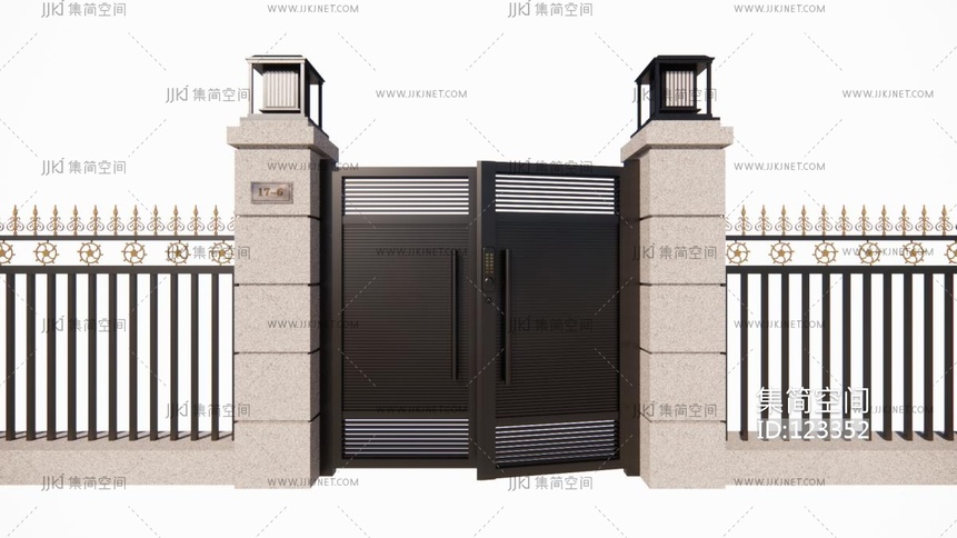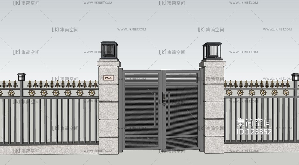 新中式别墅大门_门柱灯 su草图模型下载 [模型ID:123352]
