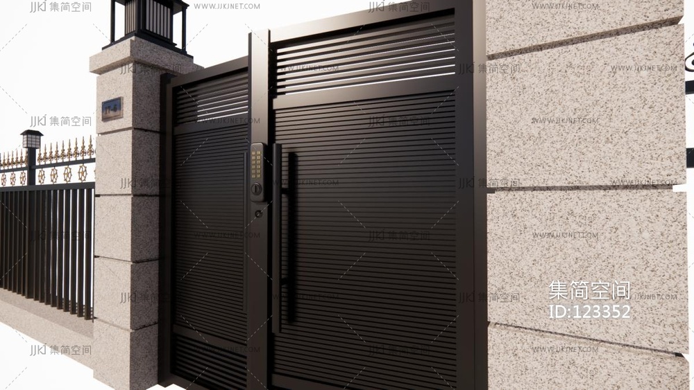 现代其他门_现代铁艺大门组合SU模型su草图模型下载