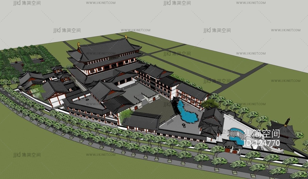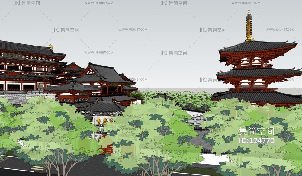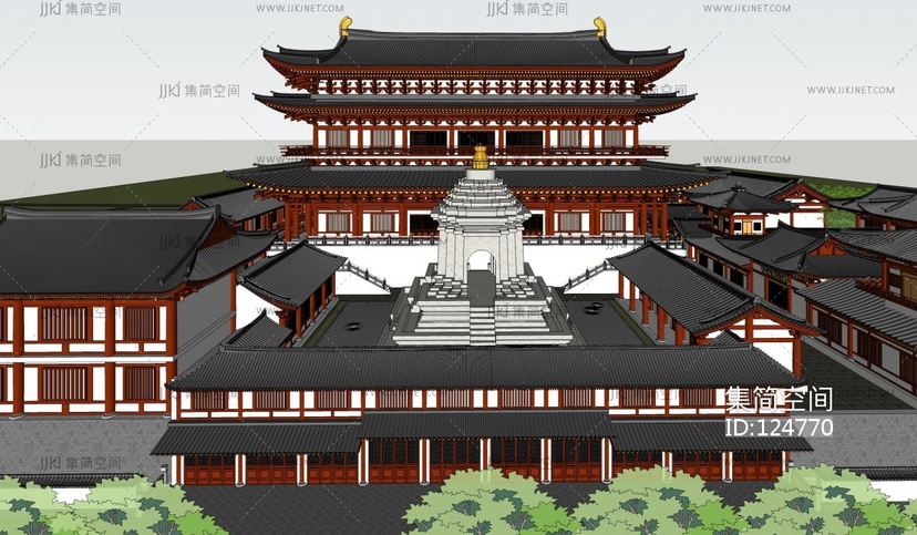 中式古建,古代寺庙建筑 su草图模型下载 [模型ID:124770]