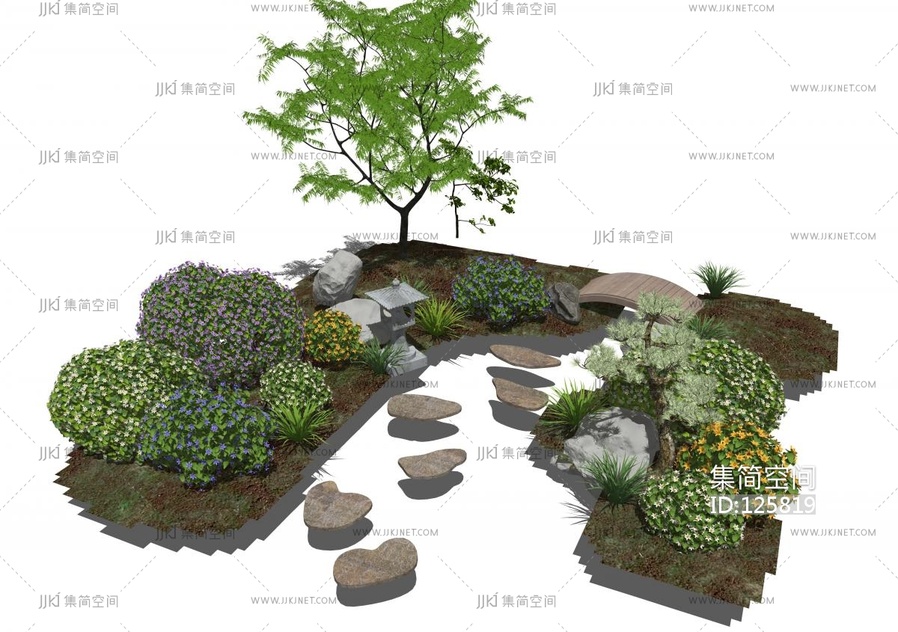 灌木_灌木球_花草组合SU模型su草图模型下载