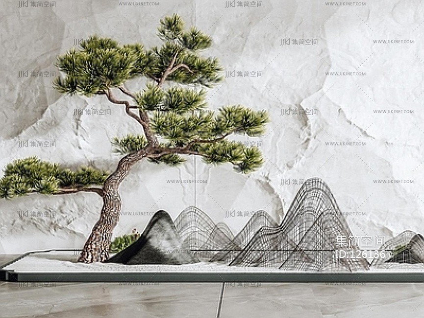 新中式景观水景铁丝山脉盆景 su草图模型下载 [模型ID:126136]