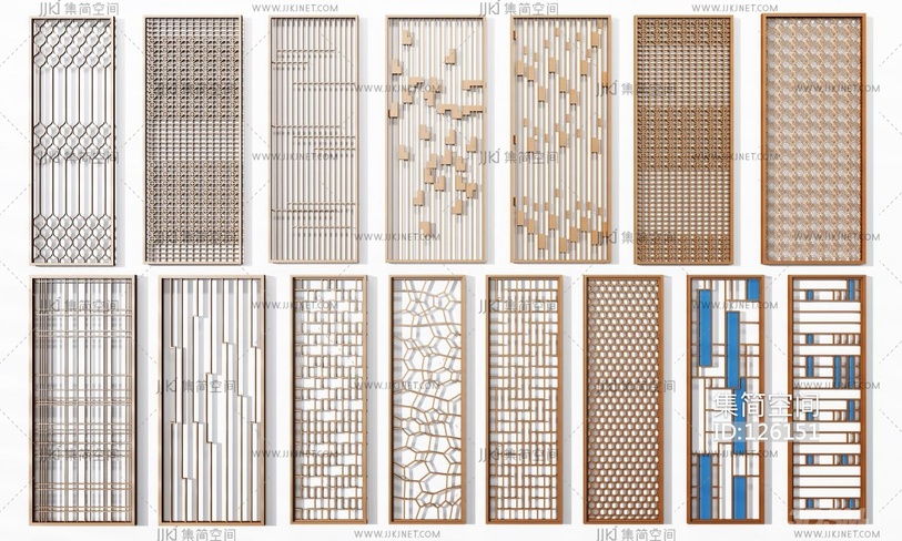 新中式金属屏风组合 su草图模型下载 [模型ID:126151]