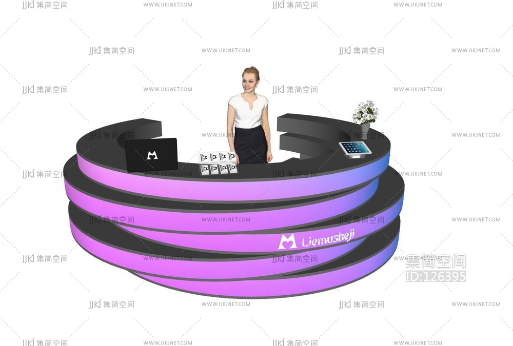 现代弧形圆形接待台服务台 su草图模型下载 [模型ID:126395]