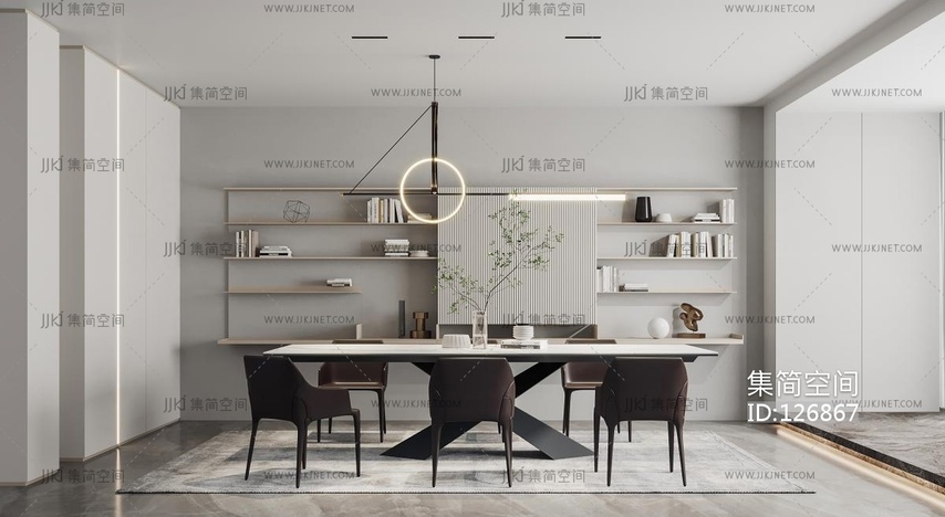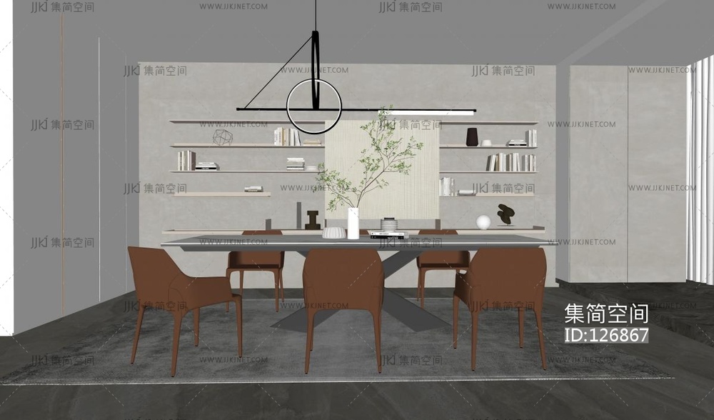 现代书房书桌椅 su草图模型下载 [模型ID:126867]